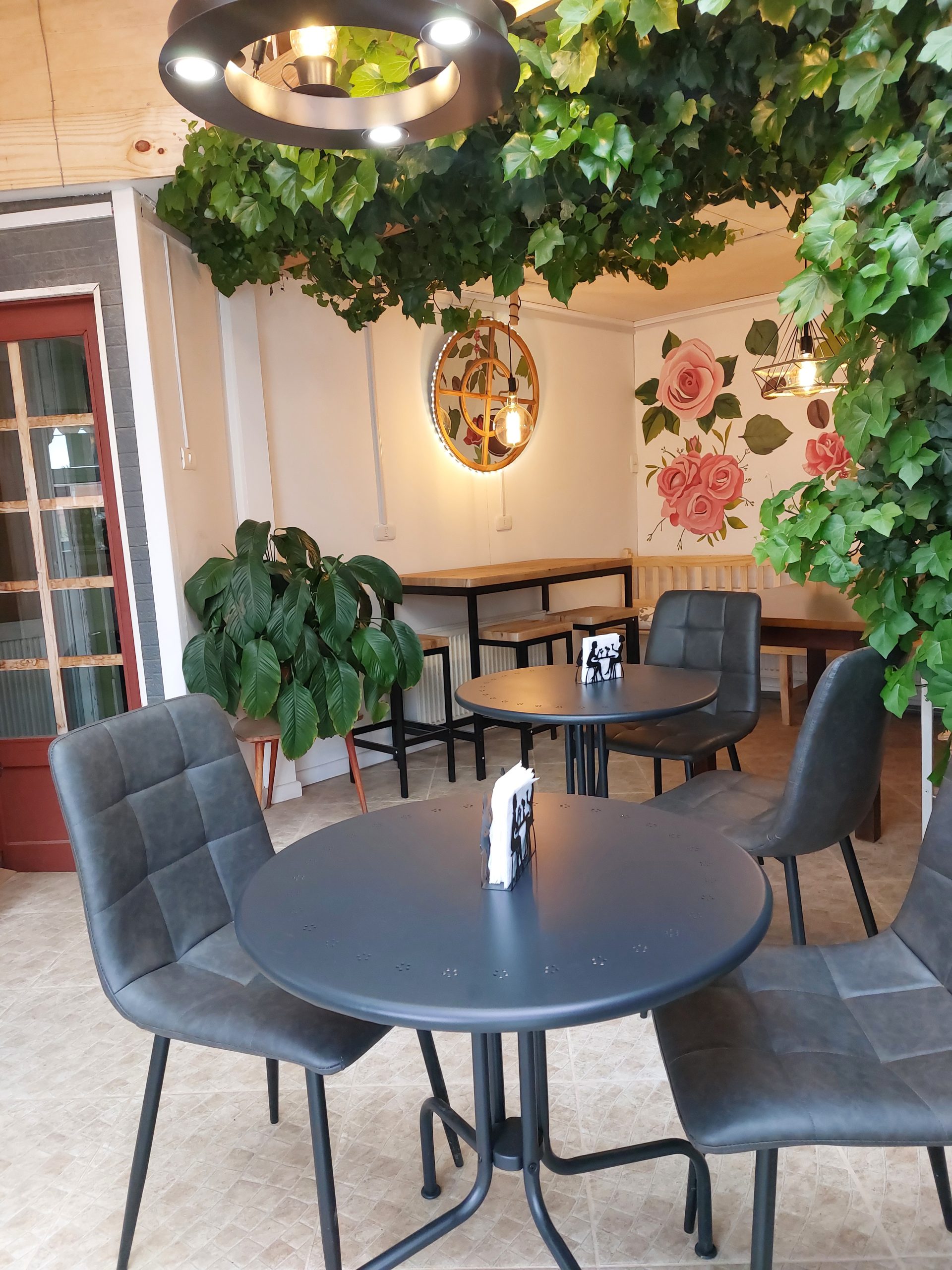 Un espacio de café al paso donde se mezcla lo natural de los jardines con el aroma de cafe .